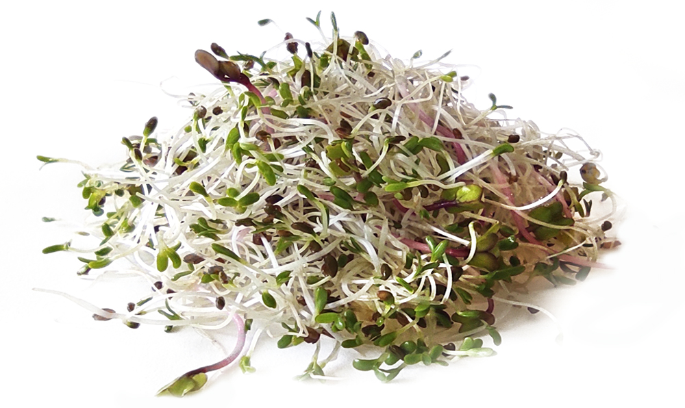 Wyśmienita do spróbowania na początek kompozycja kiełków rzodkiewki i lucerny. Posiadają wiele cennych składników odżywczych zawartych w obu składnikach mieszanki. Są to między innymi łatwo przyswajalne białka, witaminy C i B1 oraz mikroelementy: żelazo, cynk, magnez.